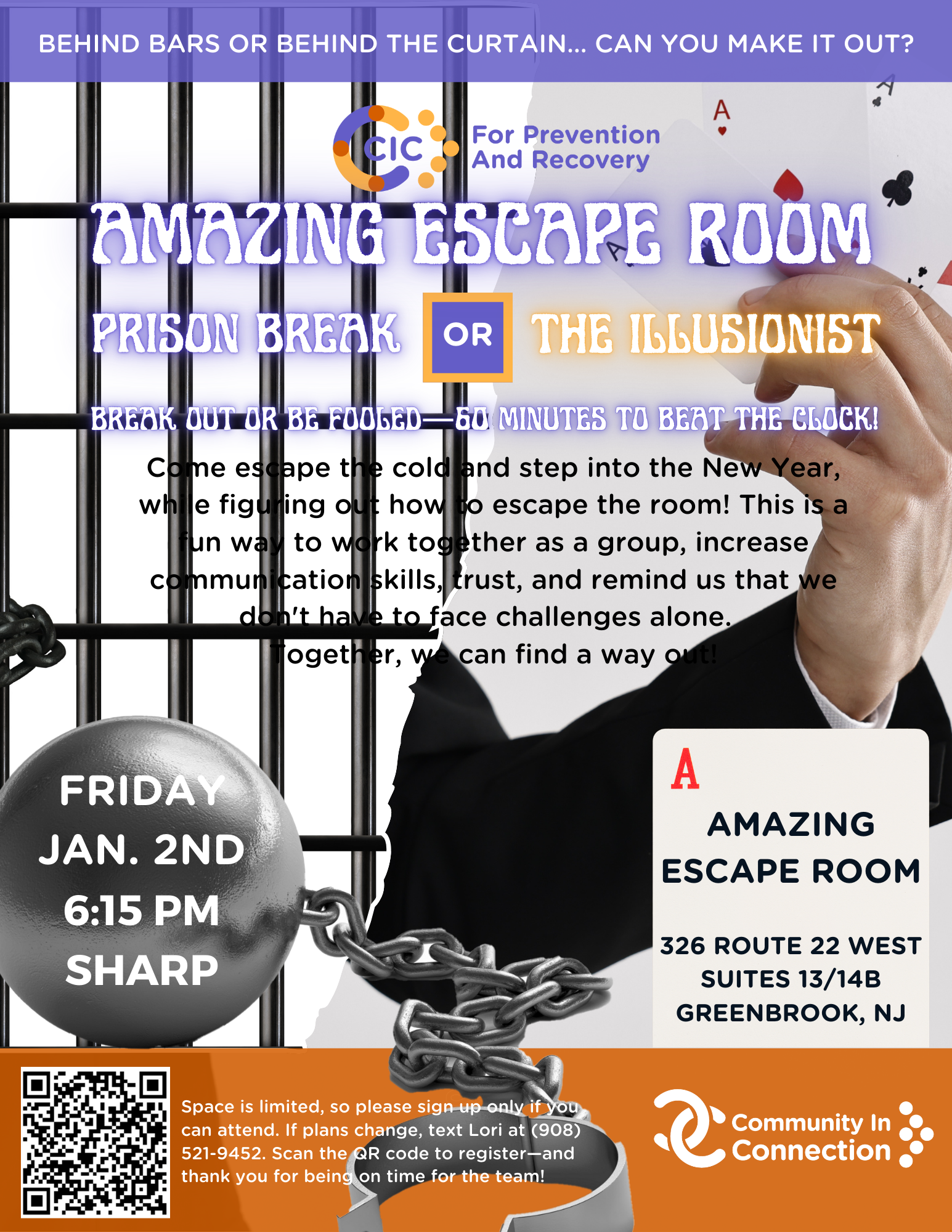 Come escape the cold and step into the New Year, while figuring out how to escape the room! This is a fun way to work together as a group, increase communication skills, trust, and remind us that we don’t have to face challenges alone.