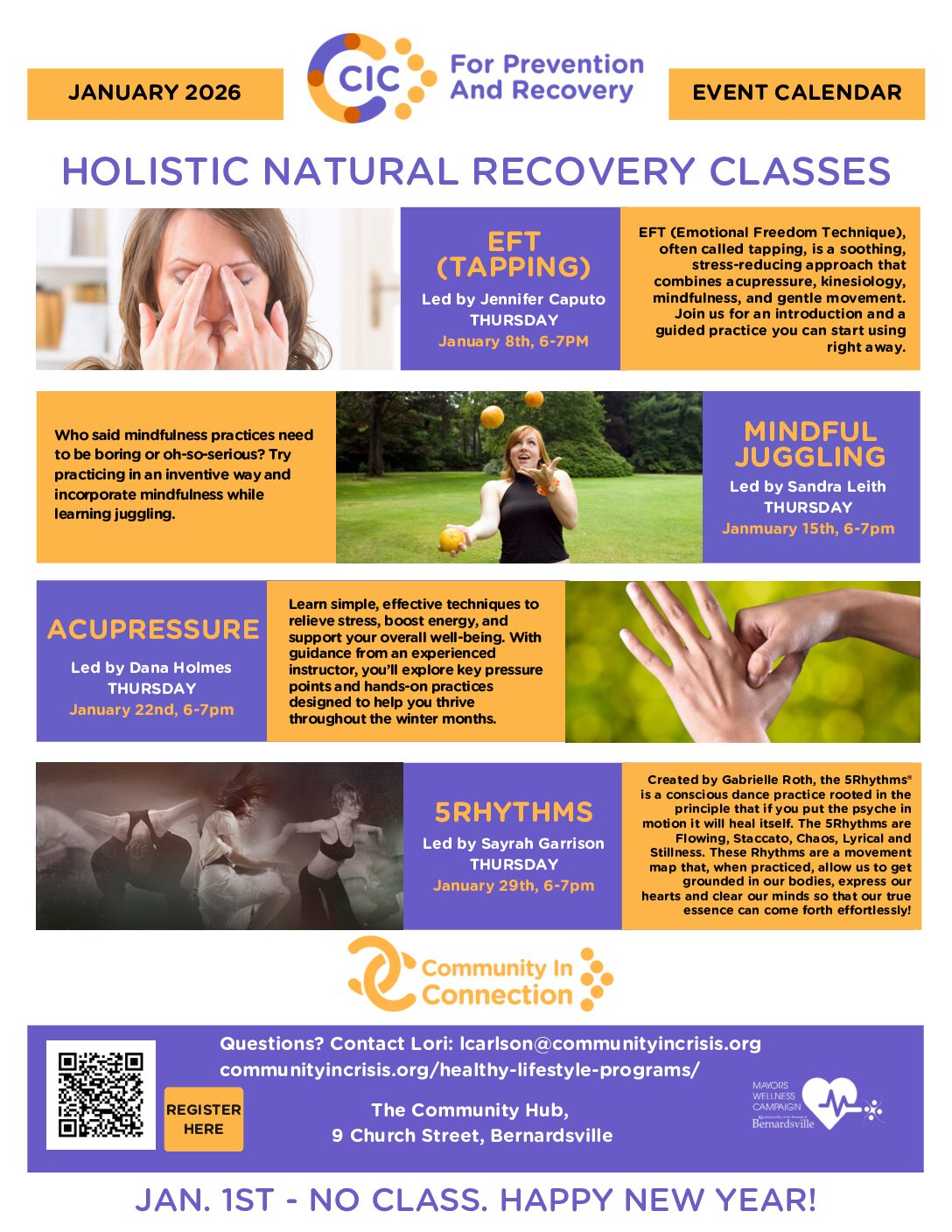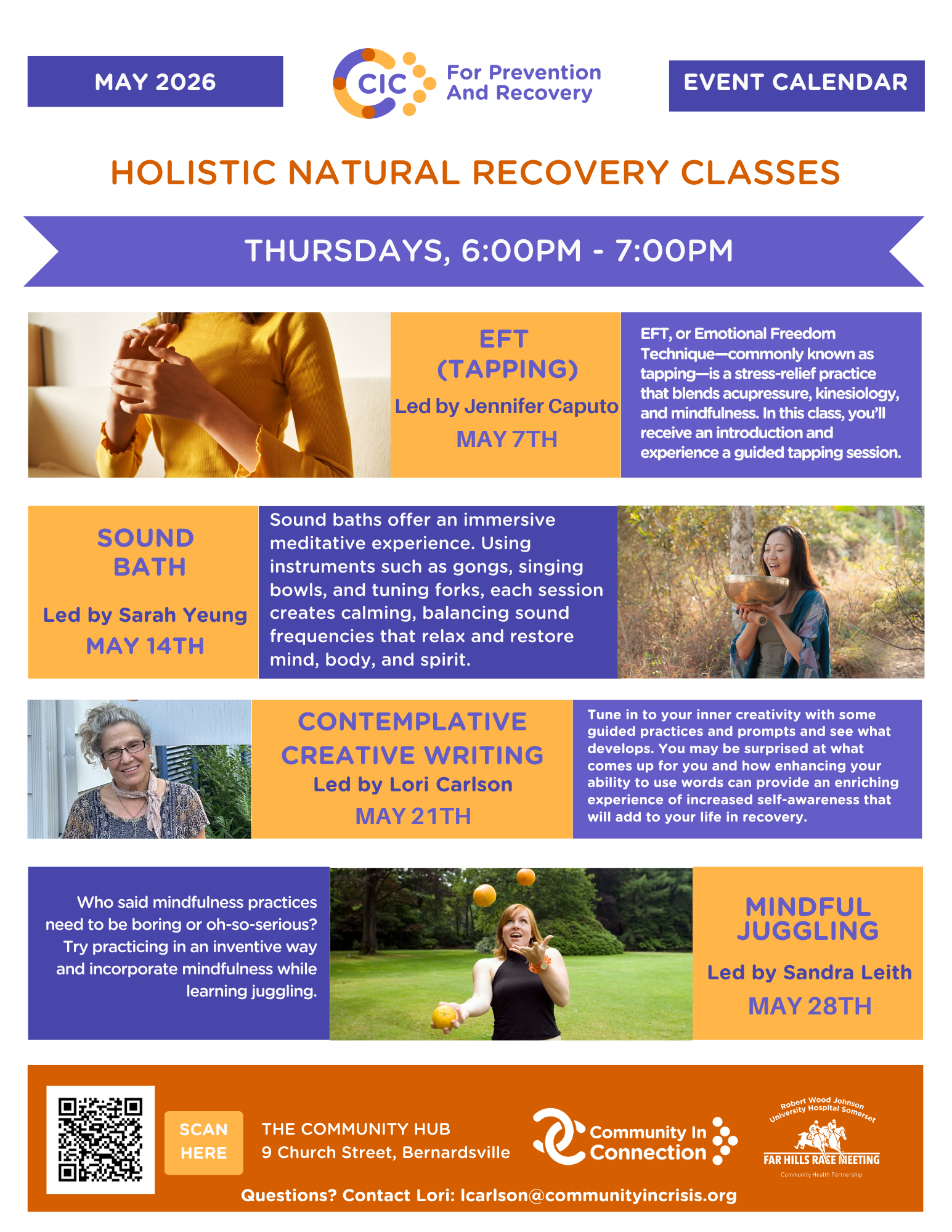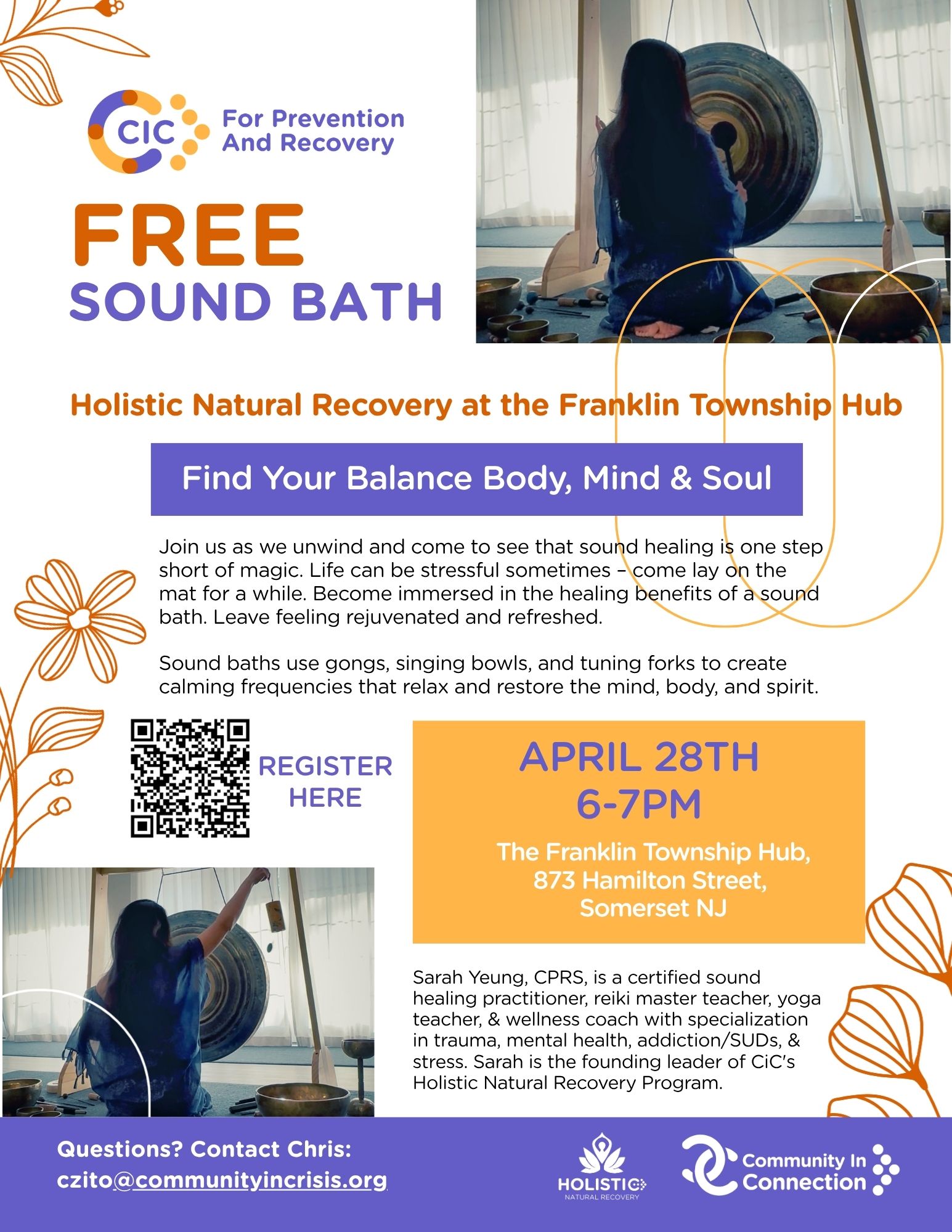 Join us Thursdays from 6:00–7:00 PM at The Community Hub (9 Church St, Bernardsville) for CiC’s Holistic Natural Recovery Program!
