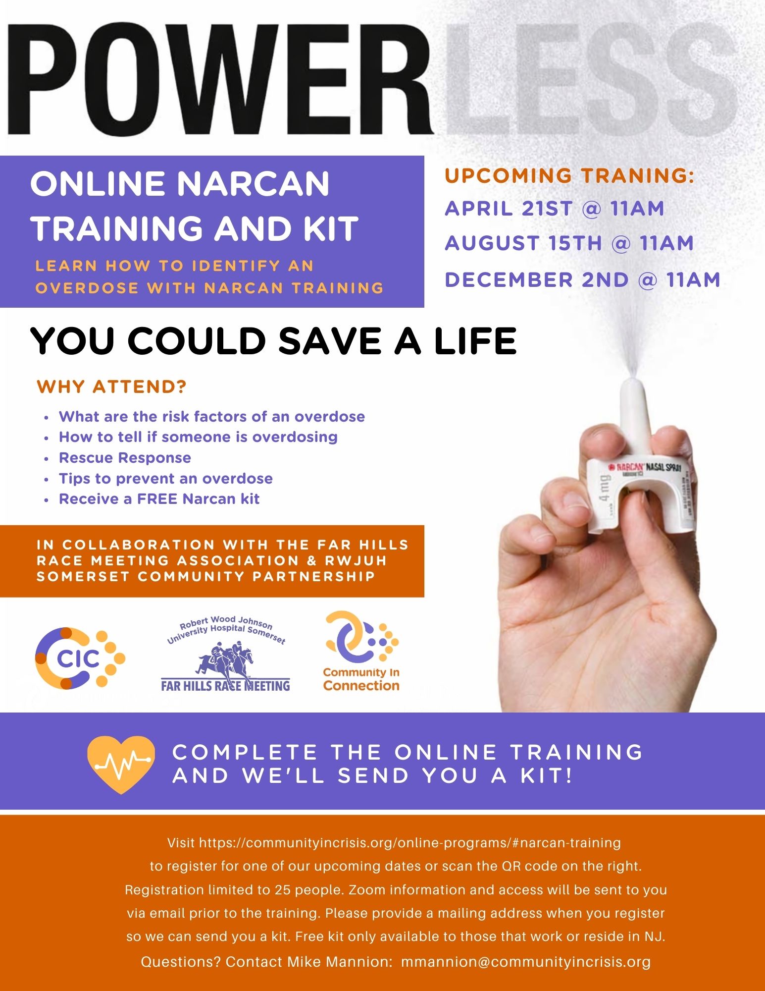 You could SAVE A LIFE. Learn how to identify an overdose with Narcan Training.